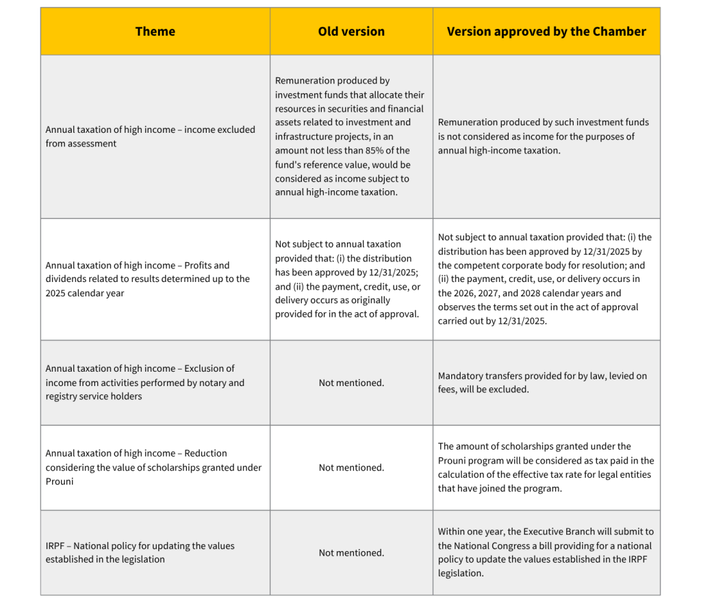 Regra geral: a partir de 2026, tributação mínima do IRPF (“IRPFM”) sobre pessoas físicas com rendimentos superiores a R$ 600.000,00 no ano-calendário (a ser paga no exercício seguinte).